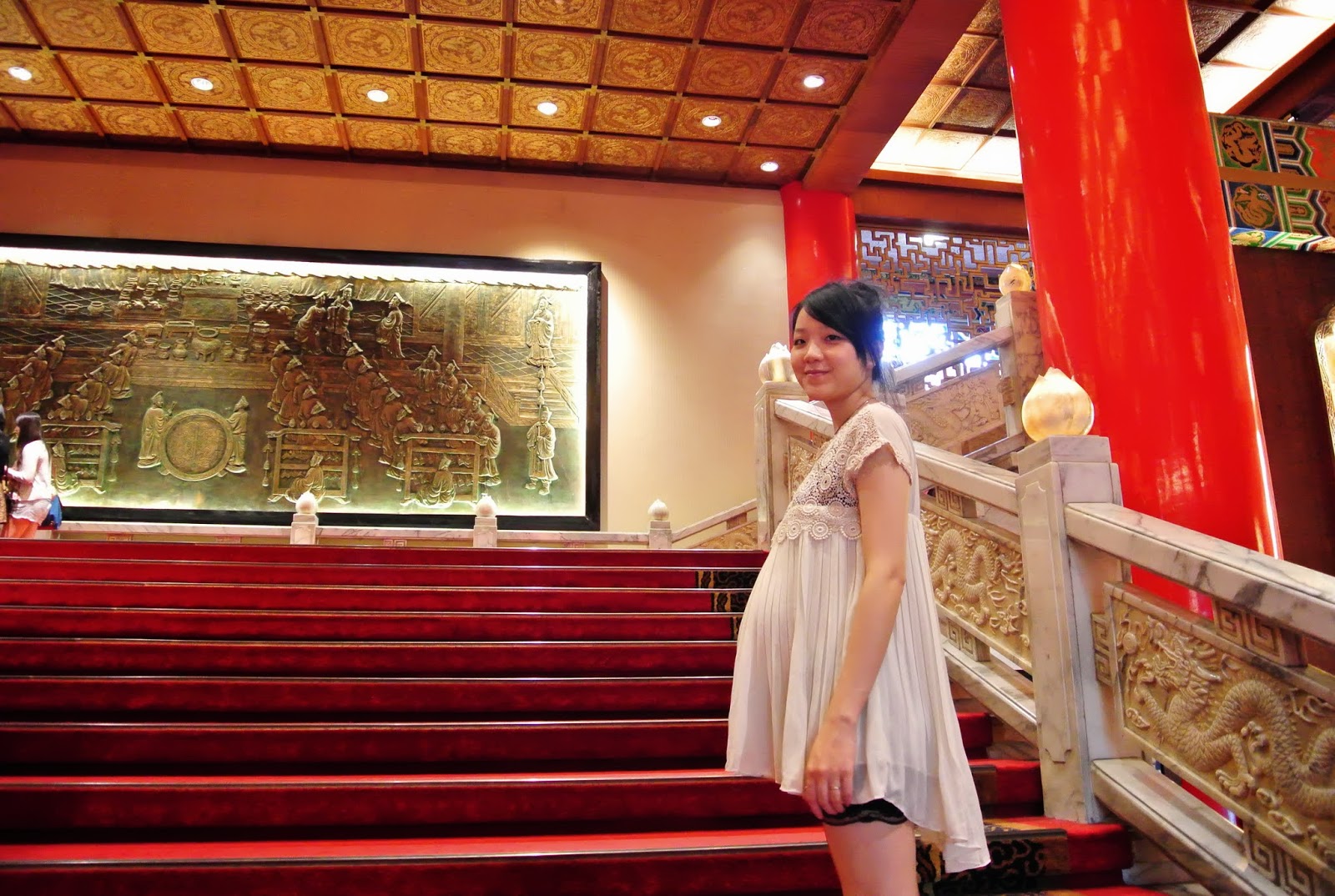 照這張實在不容易,那天不知道為什麼整個大廳空蕩蕩的,找個人幫我們拍照都有困難。後來遇到了好心的大陸人~ 二樓後的走廊
