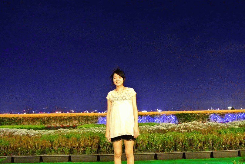 之後我們走到三樓,發現有一個很大的平台,有很棒的VIEW~ 近看夜晚點燈的圓山,真的很壯觀呢~ 這天空看起來假假的, 背景看起來好像合成的喲~