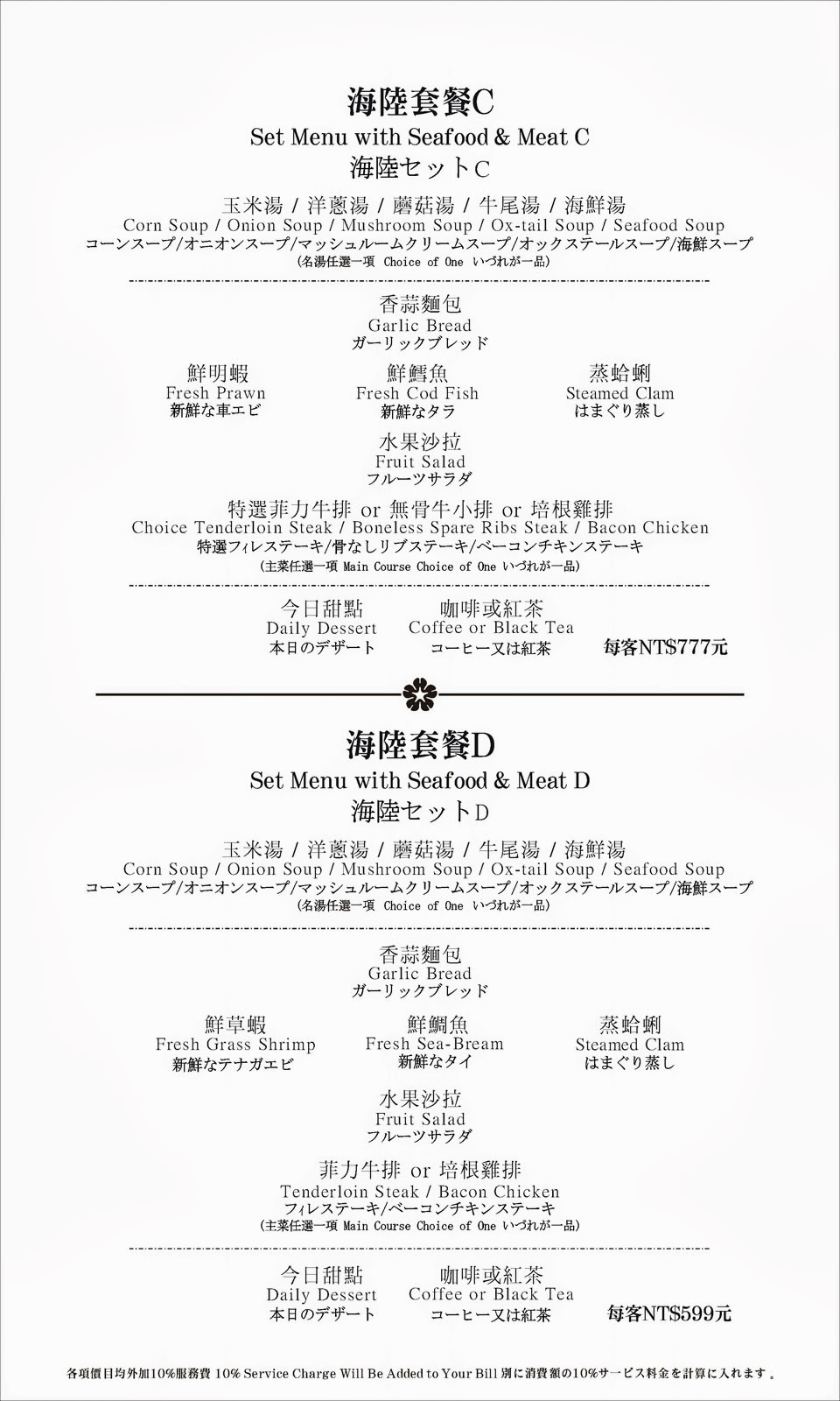 總共有A、B、C、D四種可以選擇,主要是主餐和蝦子的部分不同~